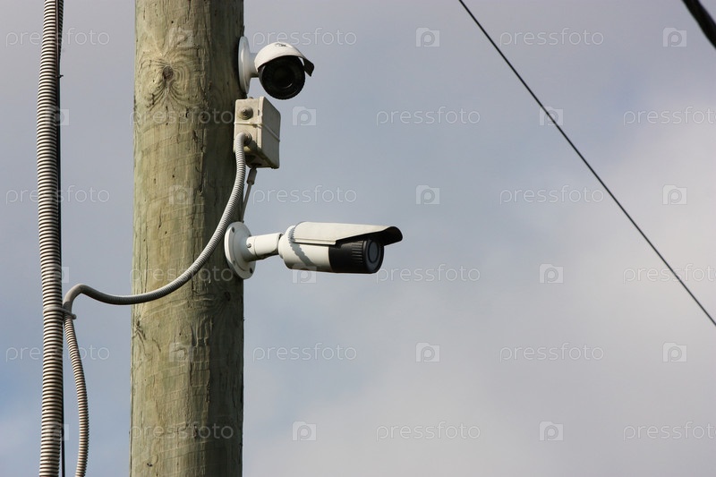Камеры видеонаблюдения на деревянном столбе