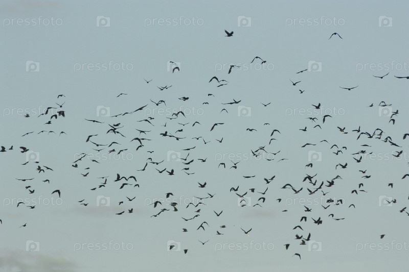 Большое стадо птиц, парящих в воздухе