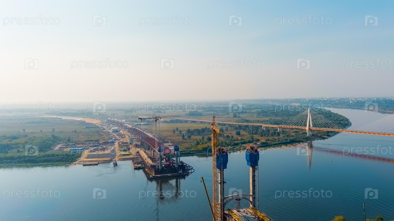 Муром, Россия.Строительство моста через реку Ока.Шоссе М-12 Москва-Нижний-Новгород-Казань, Aerial View