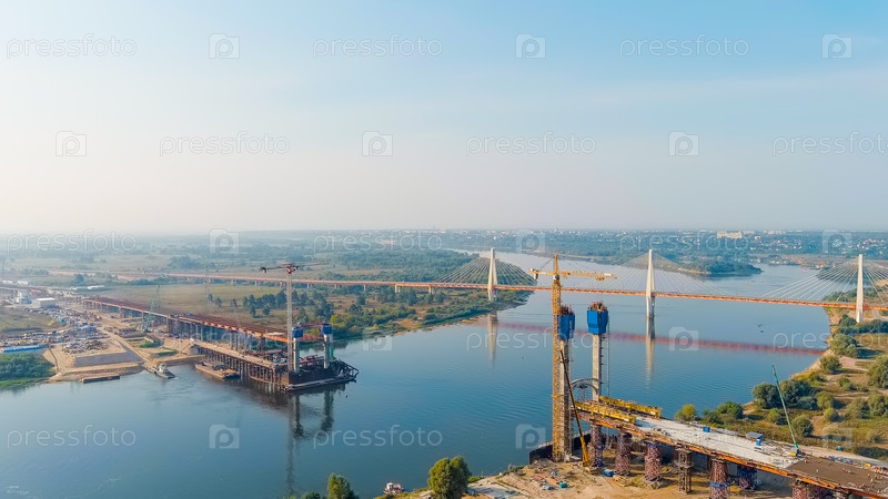 Муром, Россия.Строительство моста через реку Ока.Шоссе М-12 Москва-Нижний-Новгород-Казань, Aerial View