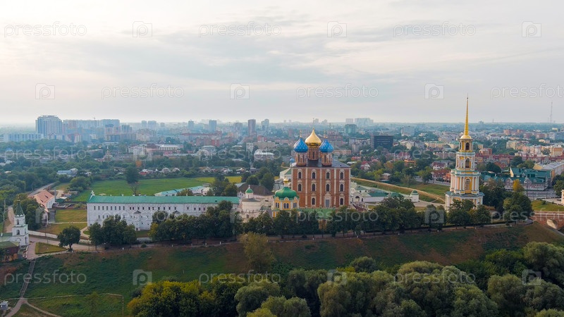 Рязань, Россия.Рязанский Кремль - самая старая часть города Рязани.Кафедральный собор Успения Пресвятой Девы Марии, вид с воздуха