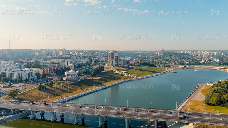 Чебоксары, Россия Администрация главы Чувашской Республики Чебоксарский залив, взгляд с воздуха