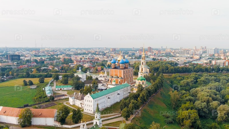 Рязань, Россия.Рязанский Кремль - самая старая часть города Рязани.Кафедральный собор Успения Пресвятой Девы Марии, вид с воздуха