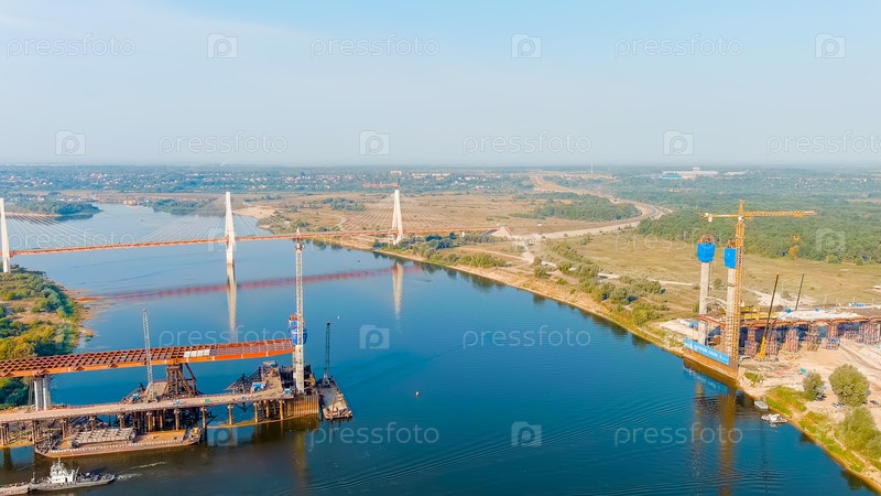 Муром, Россия.Строительство моста через реку Ока.Шоссе М-12 Москва-Нижний-Новгород-Казань, Aerial View