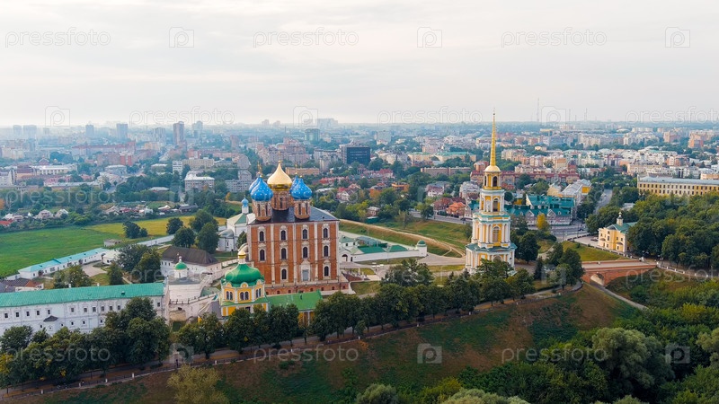 Рязань, Россия.Рязанский Кремль - самая старая часть города Рязани.Кафедральный собор Успения Пресвятой Девы Марии, вид с воздуха