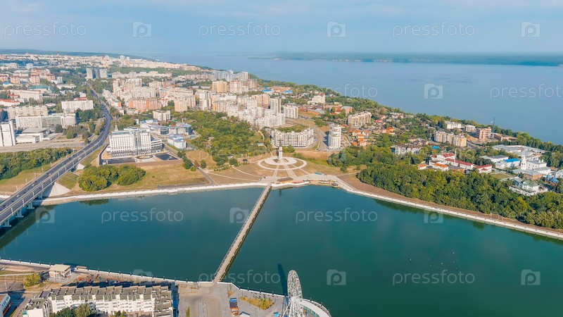 Чебоксары, Россия.Мать - покровительница.Чебоксарская бухта.Вид на реку Волгу, вид с воздуха