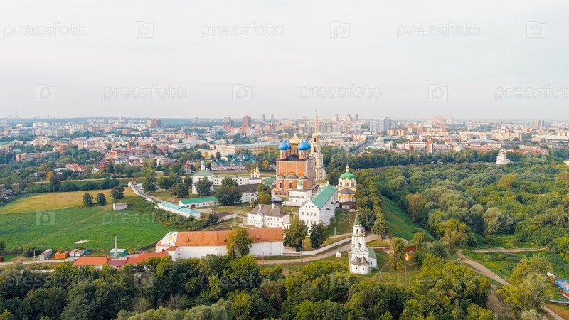 Рязань, Россия.Рязанский Кремль - самая старая часть города Рязани.Кафедральный собор Успения Пресвятой Девы Марии, вид с воздуха