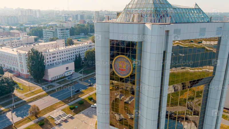 Чебоксары, Россия Администрация главы Чувашской Республики Чебоксарский залив, взгляд с воздуха