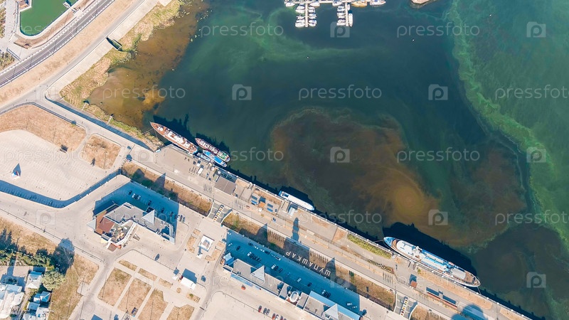 Чебоксары, Россия.Речной порт Чебоксар.Чебоксарская бухта.Вид на реку Волгу, вид с воздуха