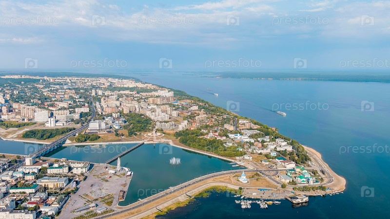 Чебоксары, Россия.Мать - покровительница.Чебоксарская бухта.Вид на реку Волгу, вид с воздуха