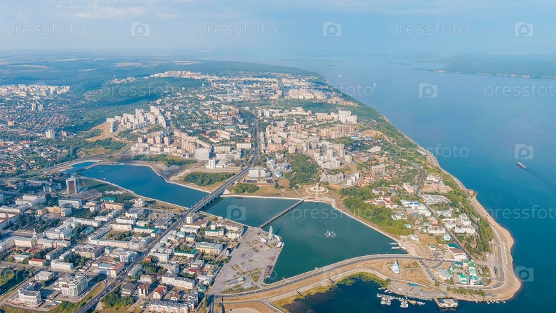 Чебоксары, Россия.Мать - покровительница.Чебоксарская бухта.Вид на реку Волгу, вид с воздуха