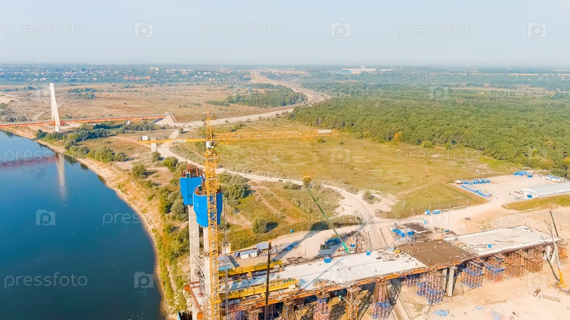 Муром, Россия.Строительство моста через реку Ока.Шоссе М-12 Москва-Нижний-Новгород-Казань, Aerial View