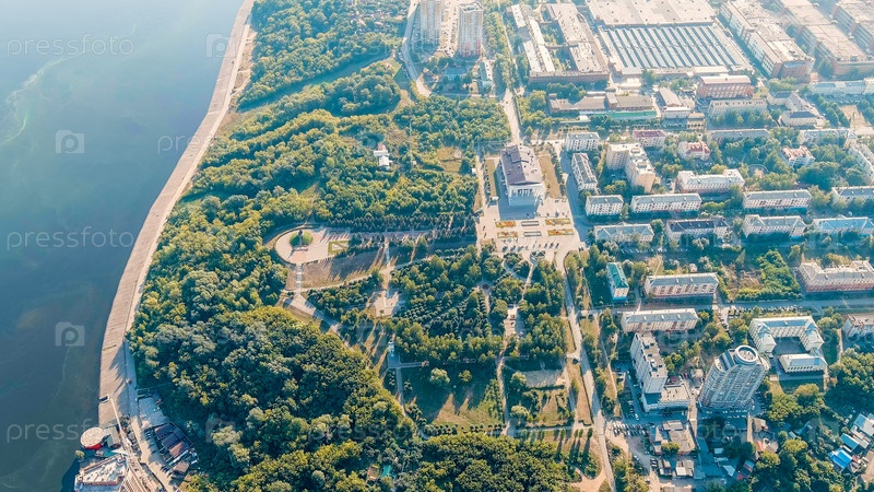 Чебоксары, Россия Мемориальный парк Победы Вид на реку Волгу, вид с воздуха