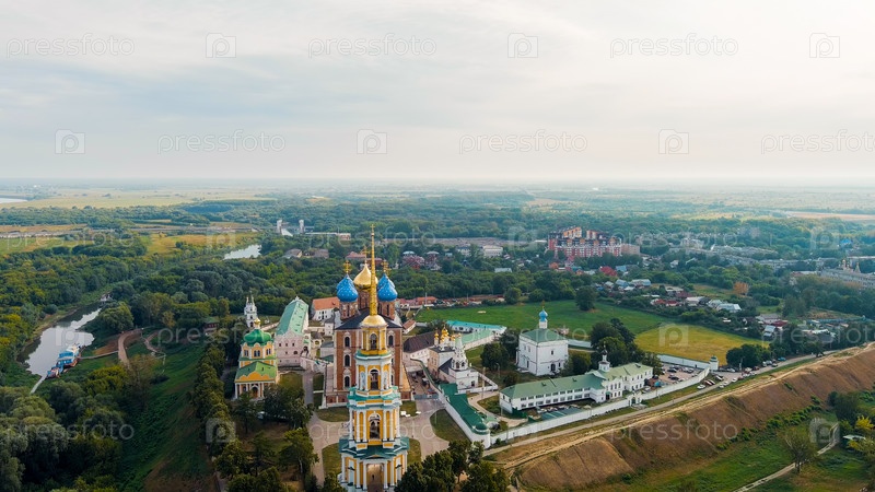 Рязань, Россия.Рязанский Кремль - самая старая часть города Рязани.Кафедральный собор Успения Пресвятой Девы Марии, вид с воздуха