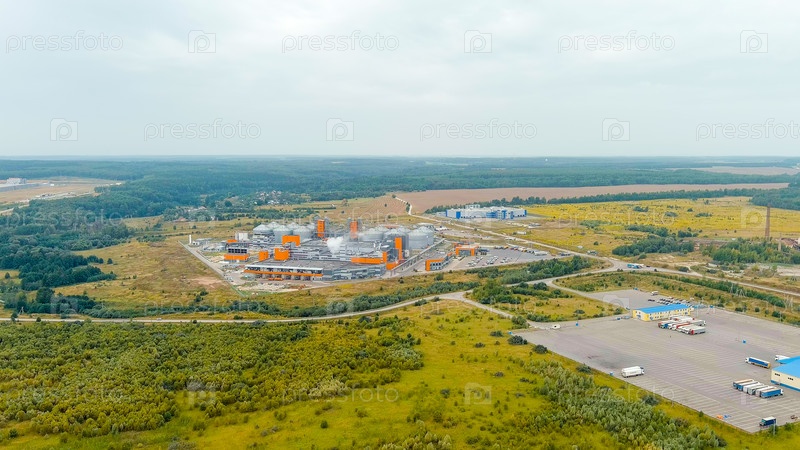 Калуга, Россия.Территория промышленного парка 'Росва'.Биохимическое производство, Aerial View
