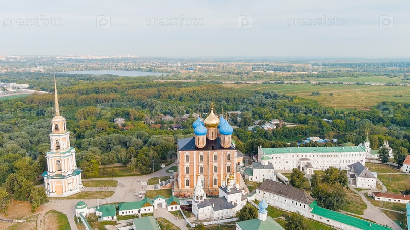 Рязань, Россия.Рязанский Кремль - самая старая часть города Рязани.Кафедральный собор Успения Пресвятой Девы Марии, вид с воздуха
