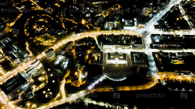 Городские огни ночью.Полет после захода солнца.Исторический центр, Aerial View Lip