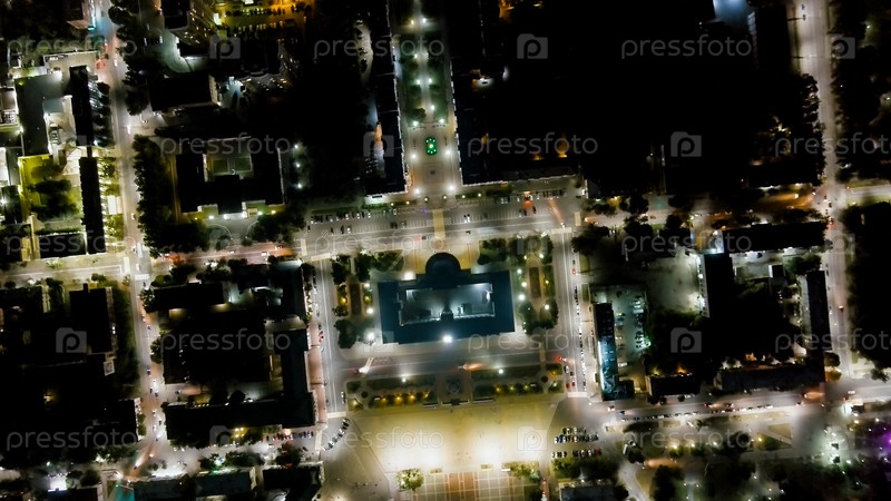 Орёл, Россия. Правительство Орельской области. Площадь Ленина. Исторический центр. Вид из воздуха на город. Ночной полет, Aerial View