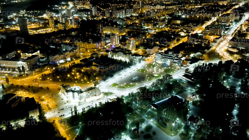 Городские огни ночью.Полет после захода солнца.Исторический центр, Aerial View Lip
