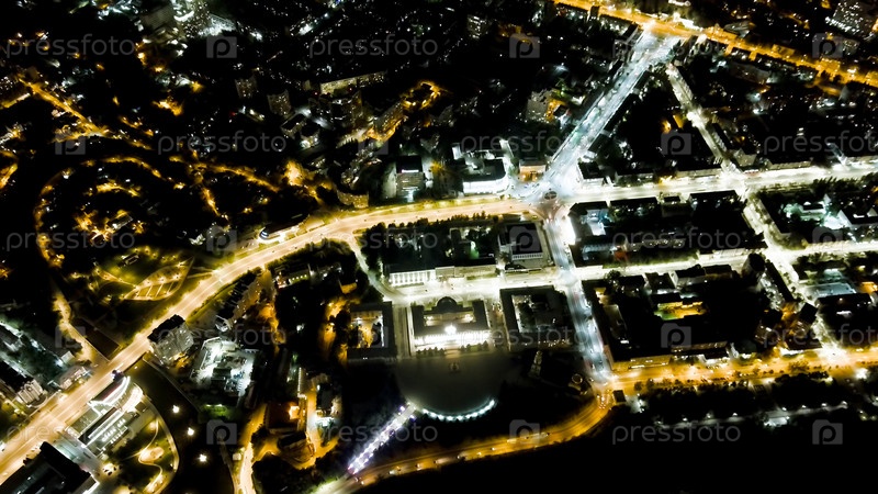 Городские огни ночью.Полет после захода солнца.Исторический центр, Aerial View Lip