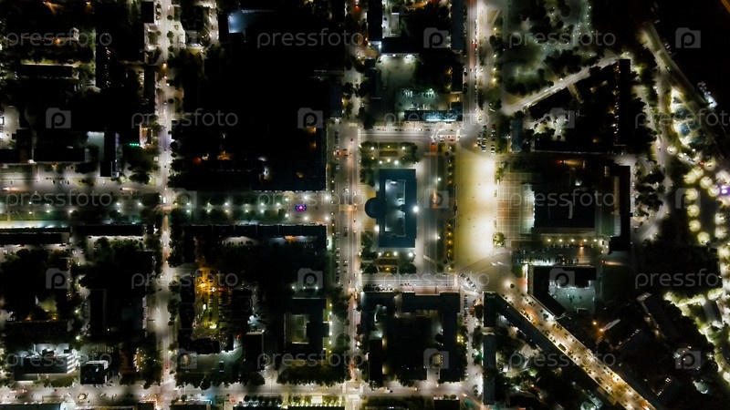 Орёл, Россия. Правительство Орельской области. Площадь Ленина. Исторический центр. Вид из воздуха на город. Ночной полет, Aerial View