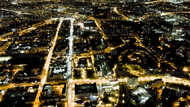 Городские огни ночью.Полет после захода солнца.Исторический центр, Aerial View Lip