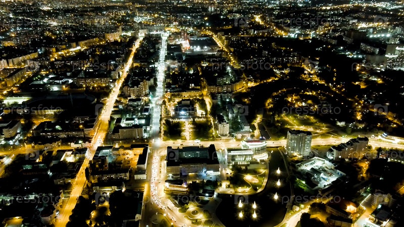 Городские огни ночью.Полет после захода солнца.Исторический центр, Aerial View Lip
