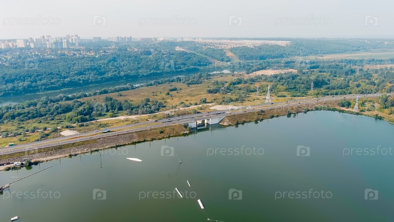 Калуга, Россия. плотина Яхенского водохранилища, взгляд с воздуха