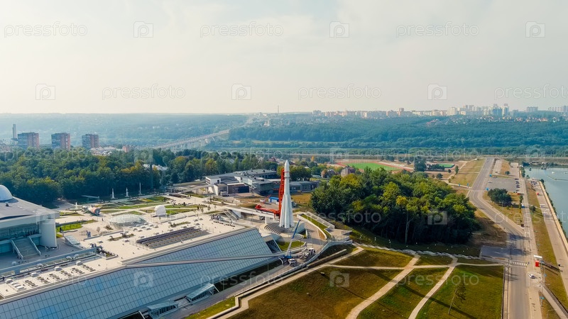 Калуга, Россия.Яченская набережная.Космическая ракета Aerian View