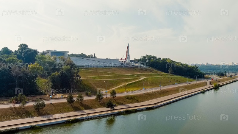 Калуга, Россия.Яченская набережная.Космическая ракета Aerian View