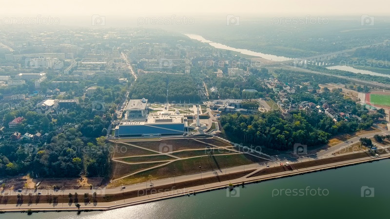 Калуга, Россия.Яченская набережная.Космическая ракета Aerian View