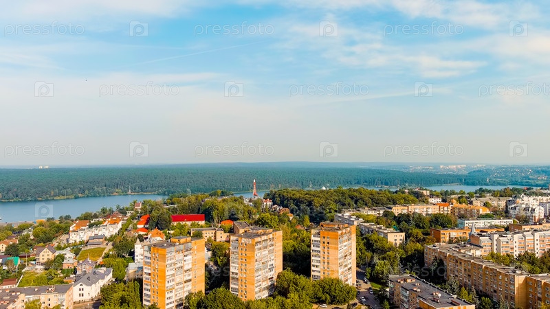 Калуга, Россия.Яхенское водохранилище.Панорама города с воздуха, Вид из воздуха