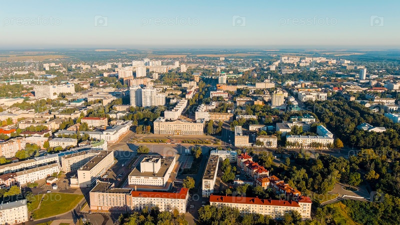Орел, Россия. Правительство Орловской области. Площадь Ленина. Исторический центр. Вид из воздуха на город, Аэропорт