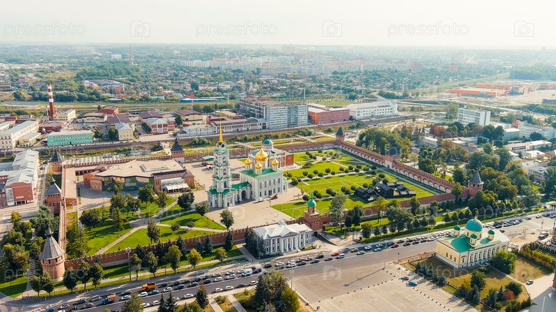 Тула, Россия.Тульский Кремль.Пешеходная улица Металистова.Общая панорама города с воздуха, Вид из воздуха