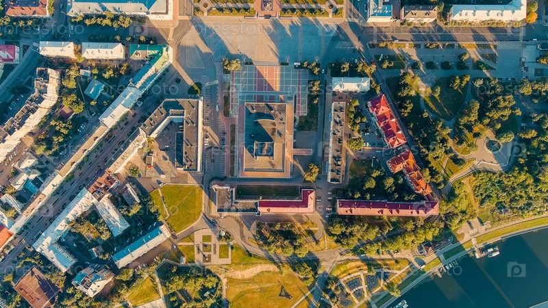 Орёл, Россия. Правительство Орельской области. Площадь Ленина. Исторический центр. Вид из воздуха на город, Взгляд с воздуха, Застрел над головой
