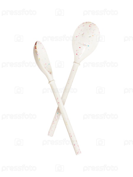 Дозировка с помощью пластиковой ложки изолирована на белом фоне