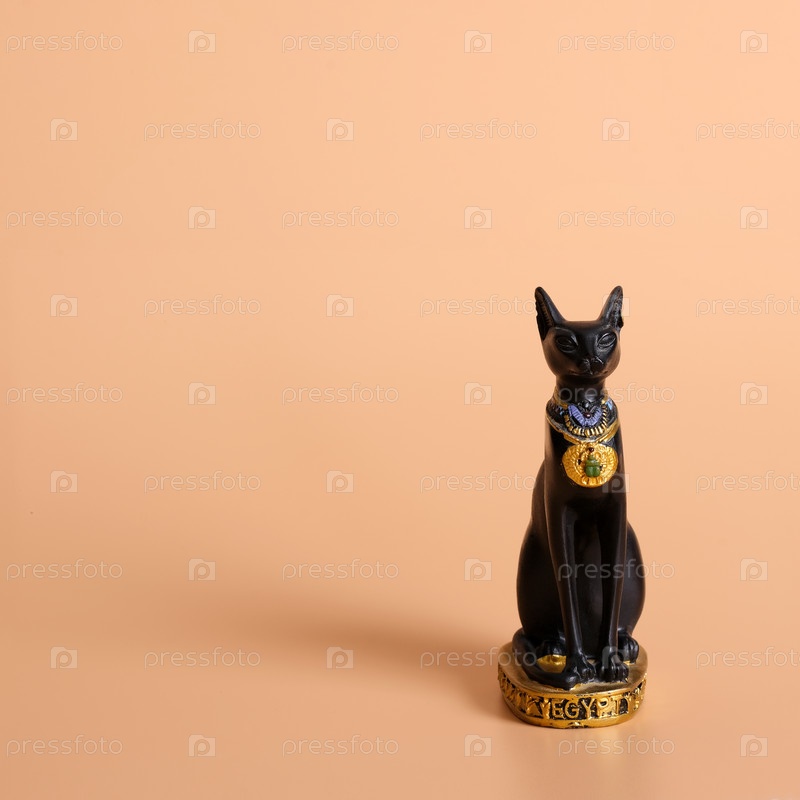 Сувенир из Египта (богиня Бастет в виде черного кота) выделен на оранжевом фоне