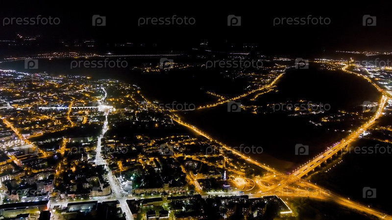 Калуга, Россия Панорама ночного города Ночной полет над городом Вид с воздуха
