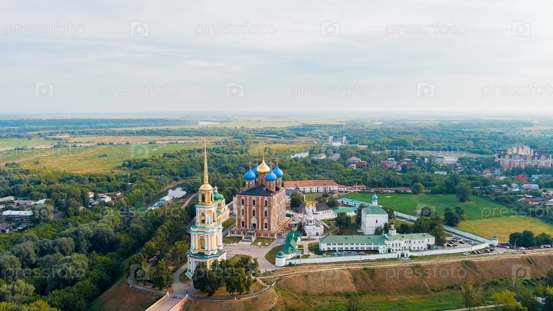 Рязань, Россия.Рязанский Кремль - самая старая часть города Рязани.Кафедральный собор Успения Пресвятой Девы Марии, вид с воздуха