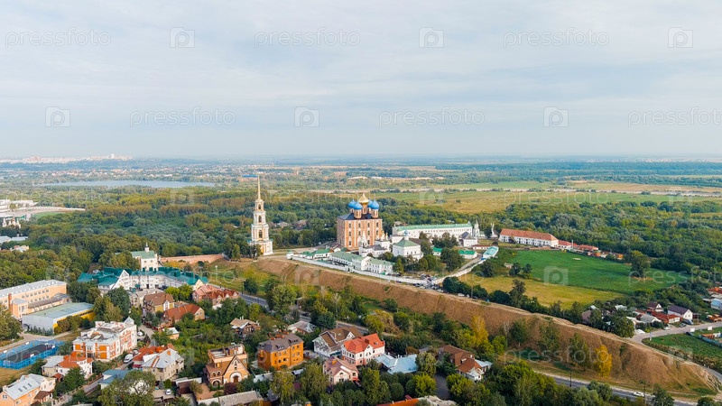 Рязань, Россия.Рязанский Кремль - самая старая часть города Рязани.Кафедральный собор Успения Пресвятой Девы Марии, вид с воздуха