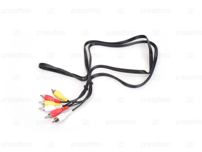 Коннекторы RCA для композитного видео (желтый) и стерео аудио (белый и красный) изолированы на белом фоне