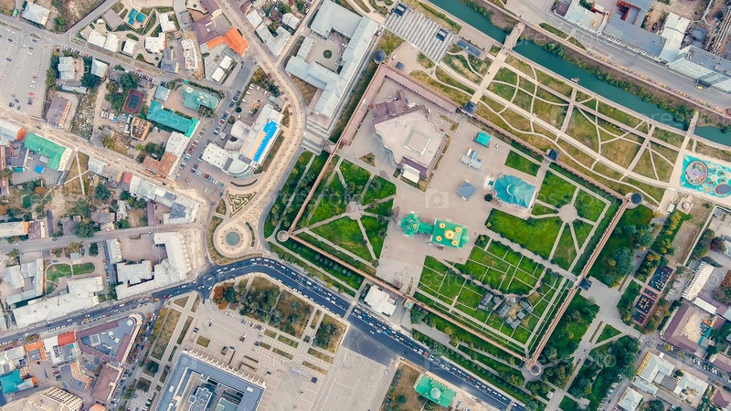 Тульский Кремль, Казанская набережная Общая панорама города с воздуха Вид из воздуха