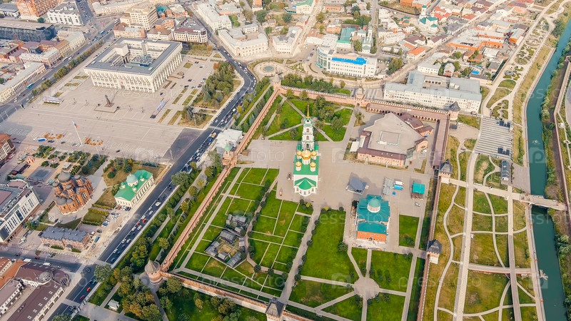 Тульский Кремль, Казанская набережная Общая панорама города с воздуха Вид из воздуха