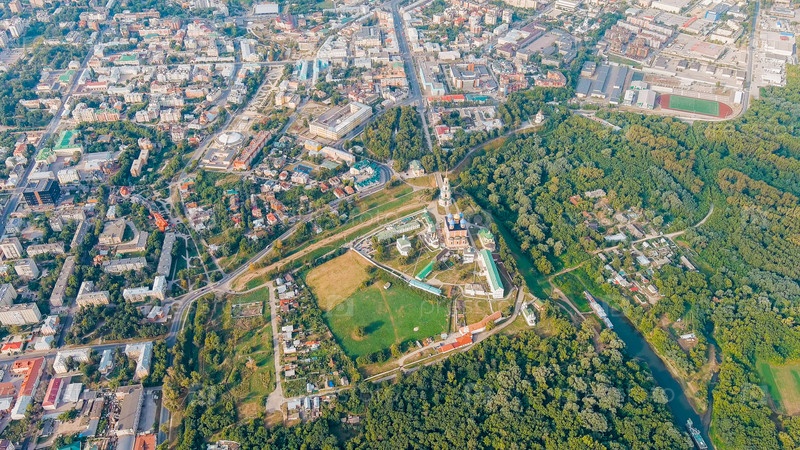 Рязань, Россия.Рязанский Кремль - самая старая часть города Рязани.Кафедральный собор Успения Пресвятой Девы Марии, вид с воздуха