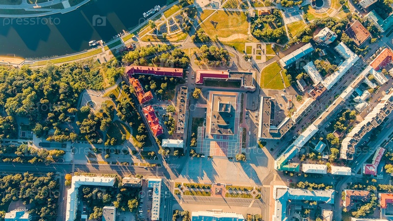 Орловская крепость парк исторический центр взгляд из воздуха на город, вид с воздуха, голова над головой