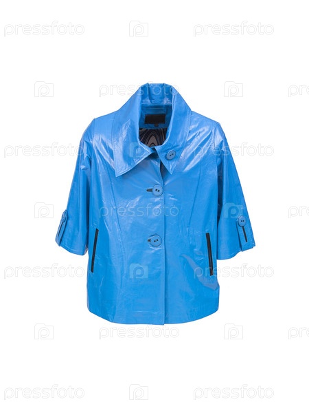 Красивая кожаная голубая куртка изолирована на белом фоне