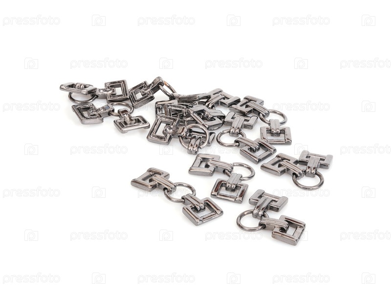 Куча клюшек для одежды, обуви, ремней, сумок, изолированных на белом фоне