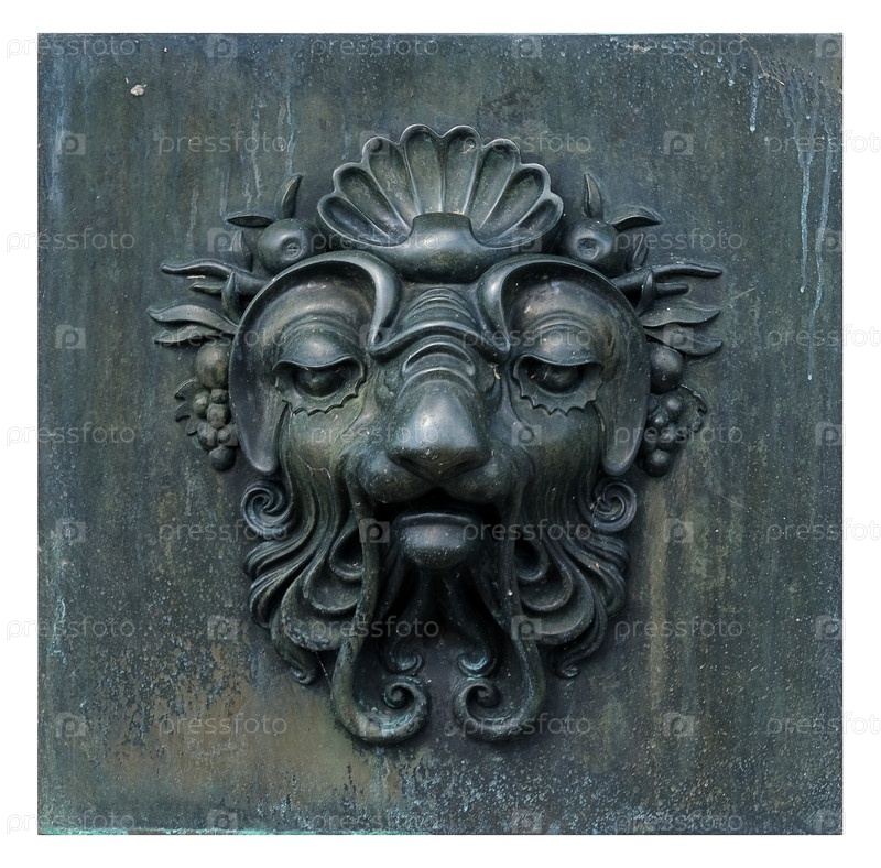 Декоративная архитектурная бронзовая маска изолирована на белом фоне