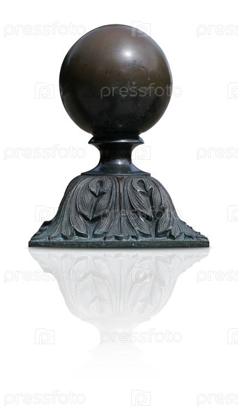 Бронзовый декоративный элемент с цветочным узором выделен на белом фоне