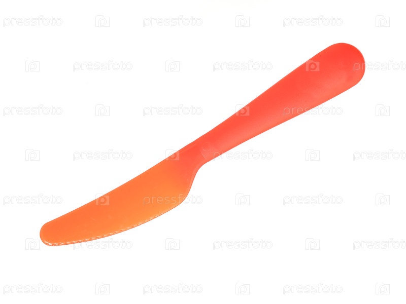 Красный пластиковый нож на белом фоне